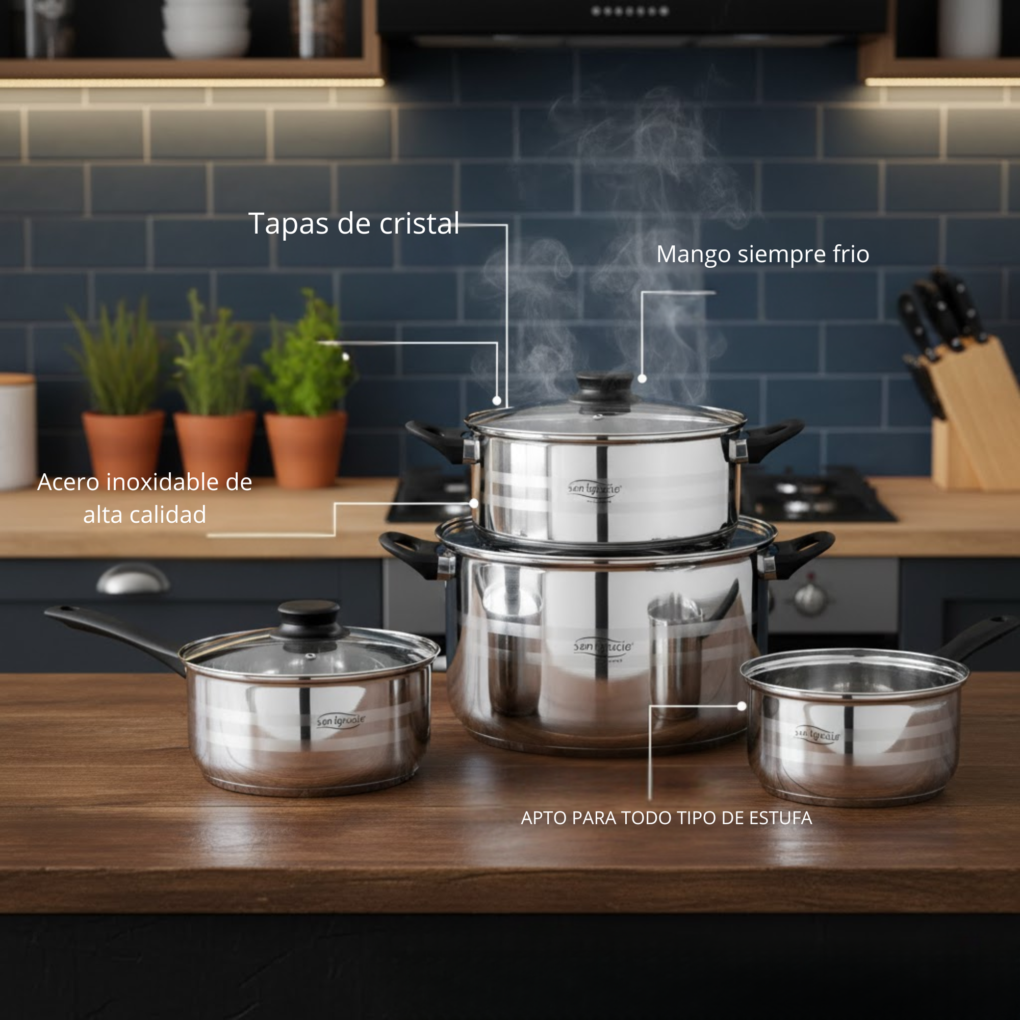 Batería de cocina San Ignacio de acero inoxidable 8 piezas - Toledo