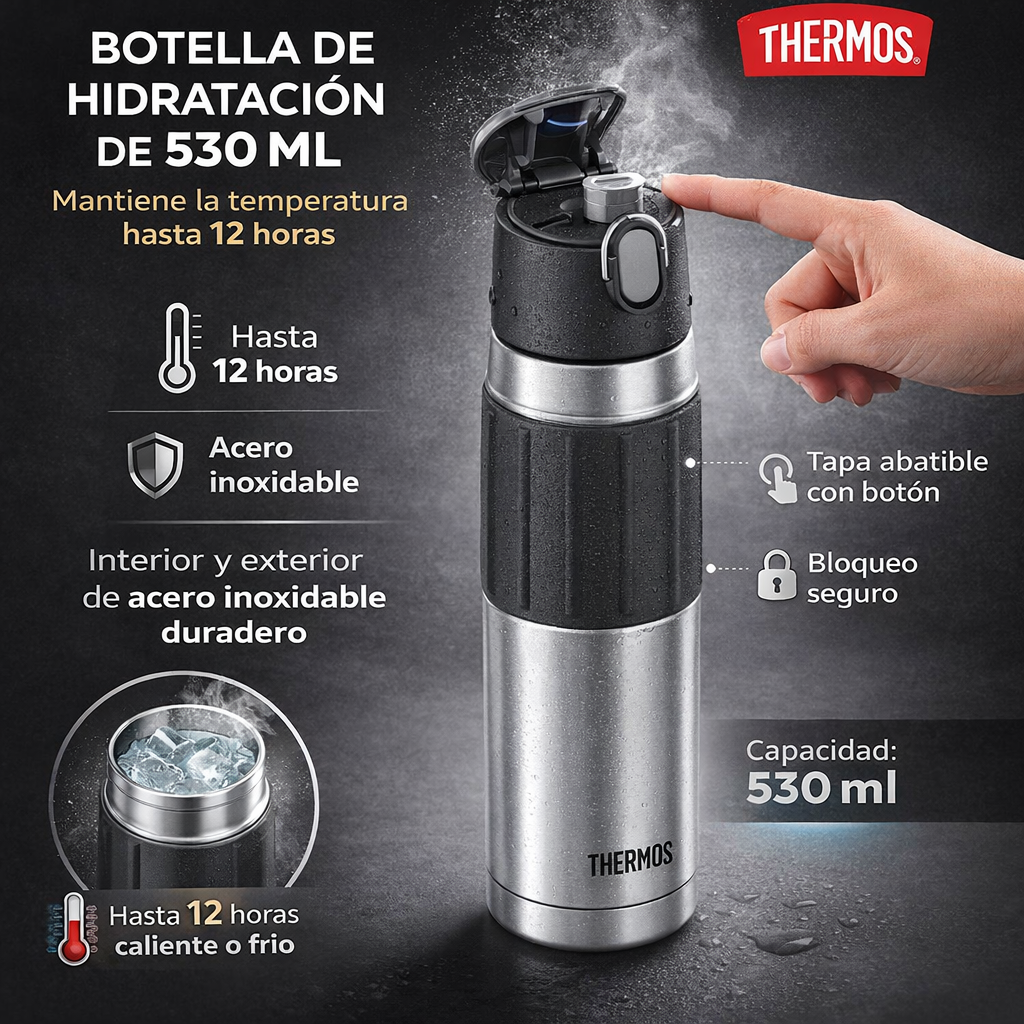 - Botella de hidratación de 530 ML con interior y exterior de acero inoxidable duradero