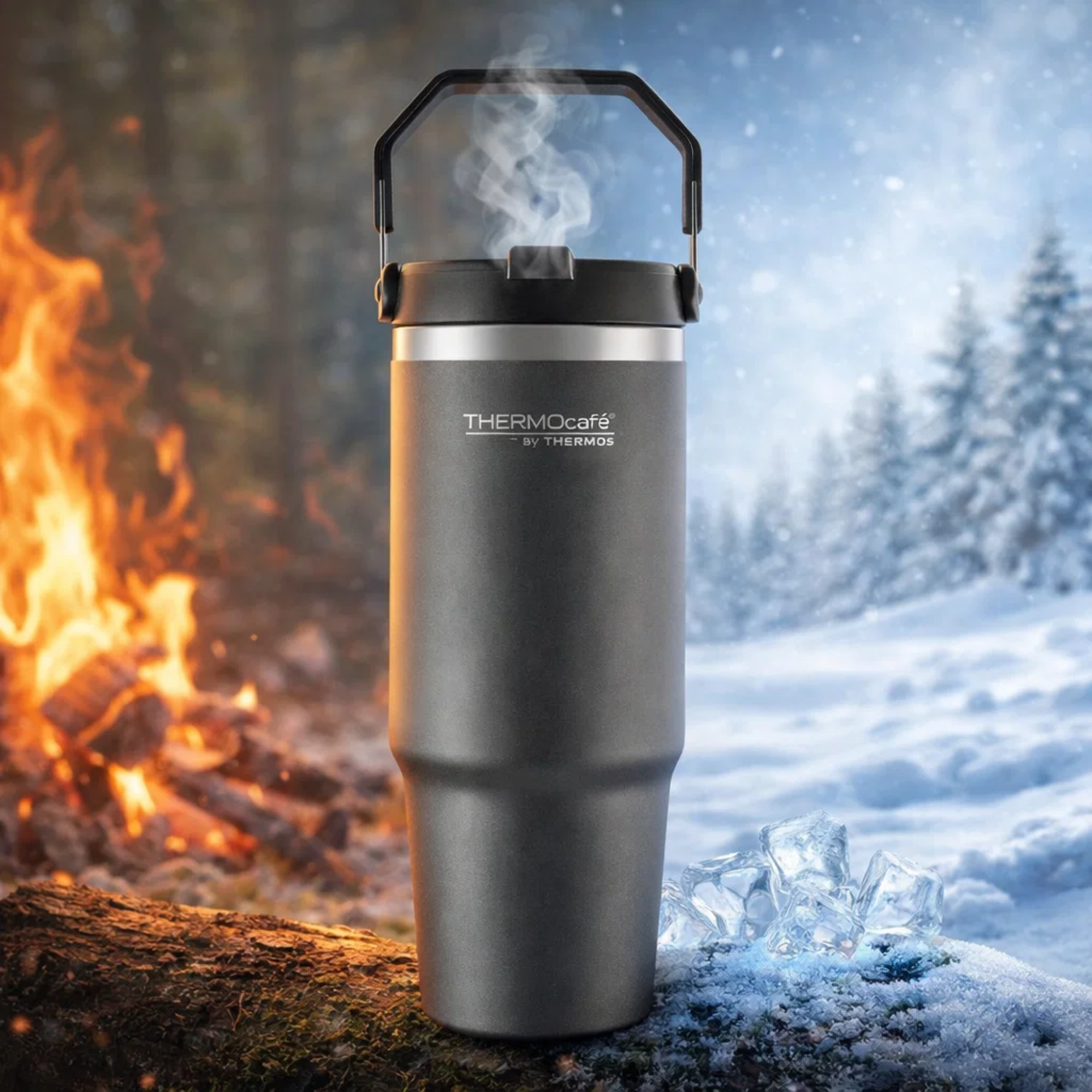 Mug Térmico Acero Inoxidable 900ml (30oz) con Tapa doble función + Mango Plástico Gris
