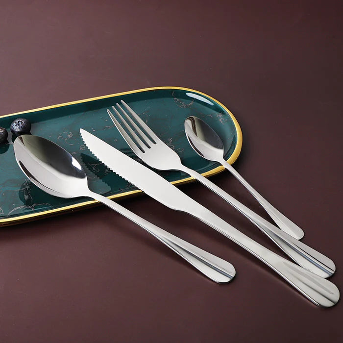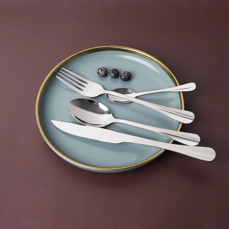 Juego de cubiertos para 4 personas modelo Capri, viene en un clásico color plateado, que brindará sobriedad a tu mesa sin pasar desapercibido. Fabricados en acero inoxidable pulido a mano y de gran resistencia para mayor durabilidad.