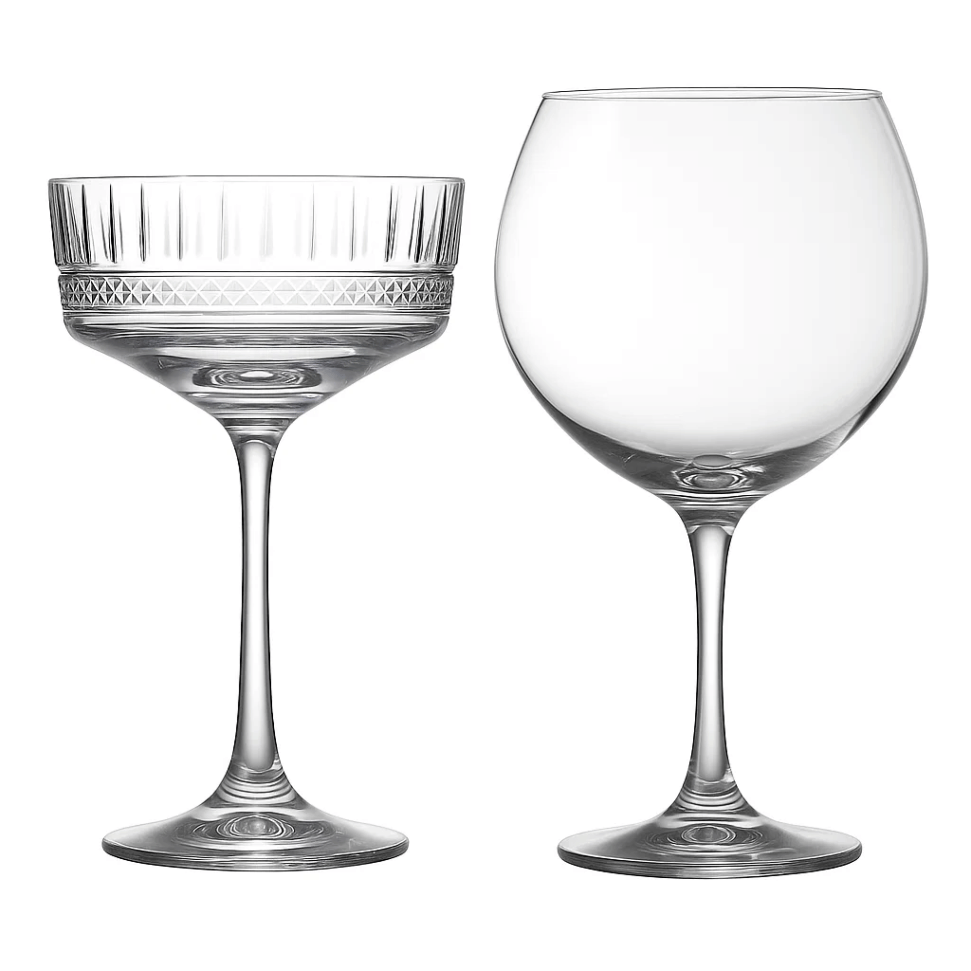 Este elegante set combina dos tipos de copas perfectas para realzar tus momentos especiales. Fabricadas en vidrio de alta calidad, las copas Royal fusionan estilo clásico con funcionalidad, ideales para celebraciones, cocteles y reuniones sociales.