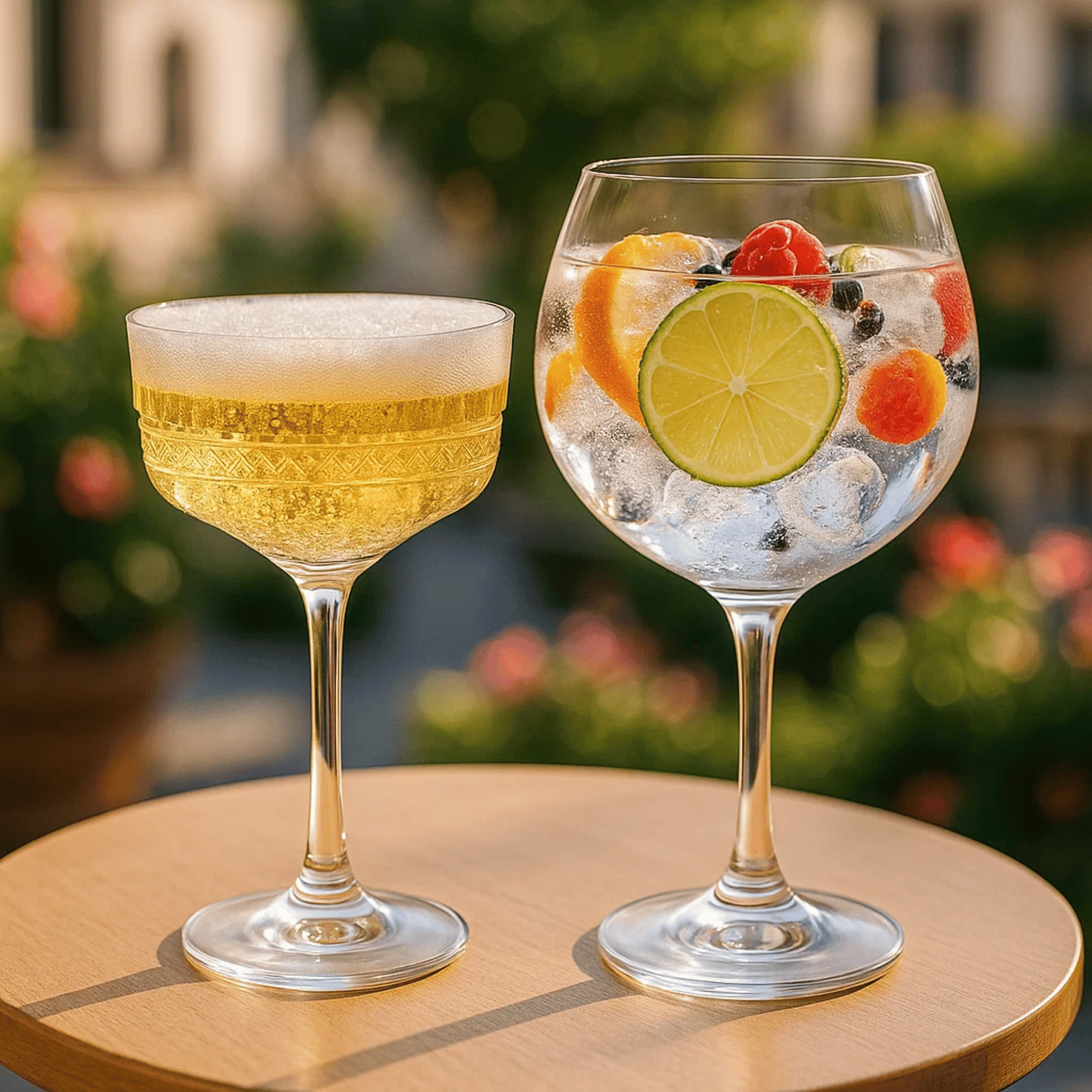 – Champagne coupe Royal: forma ancha y elegante para destacar los aromas y burbujas del champagne, cava o cocteles espumosos.