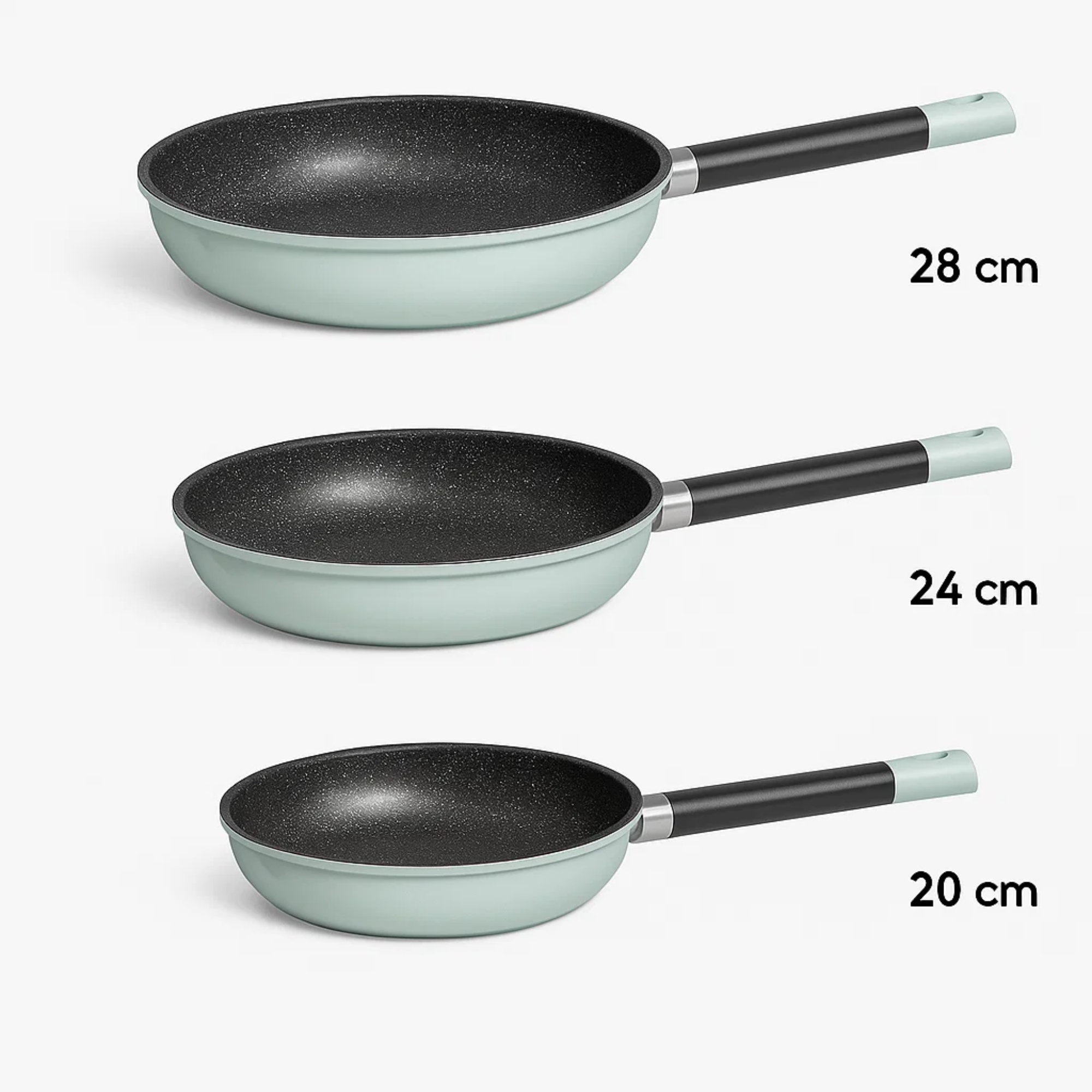 Set x3 Sartenes Soho Mint – Aluminio Forjado (20,24 Y 28 CM)