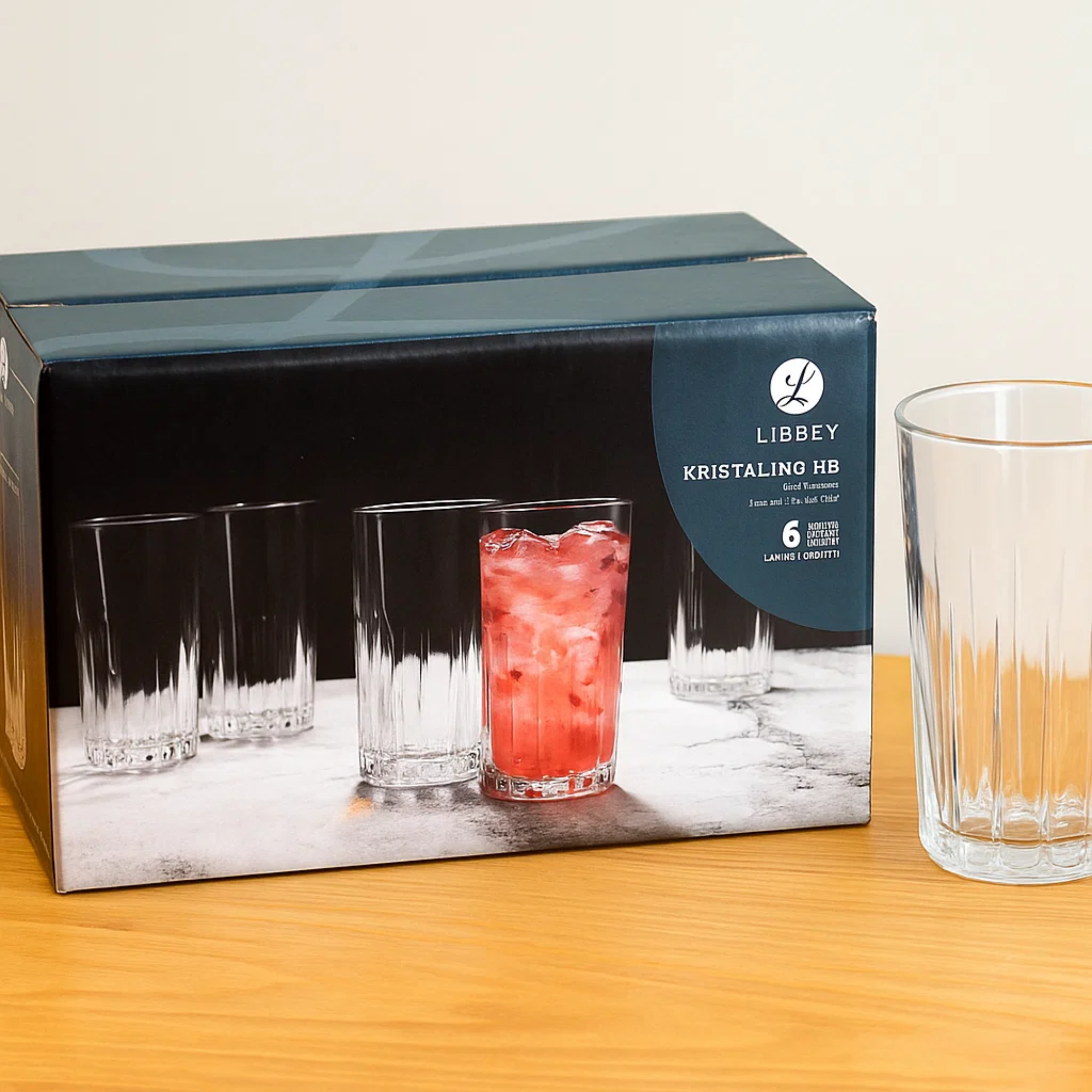 Set de 6 vasos altos HB Kristalino con capacidad de 390 ml cada uno. Fabricados en vidrio de alta calidad, resistentes y brillantes, con un diseño elegante y versátil ideal para jugos, agua, refrescos o cócteles. Perfectos para el uso diario o para complementar tu mesa en reuniones. Aptos para lavavajillas y uso frecuente.