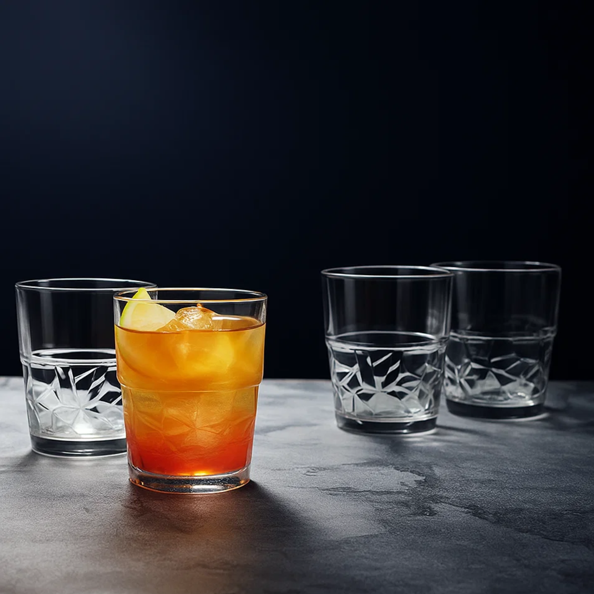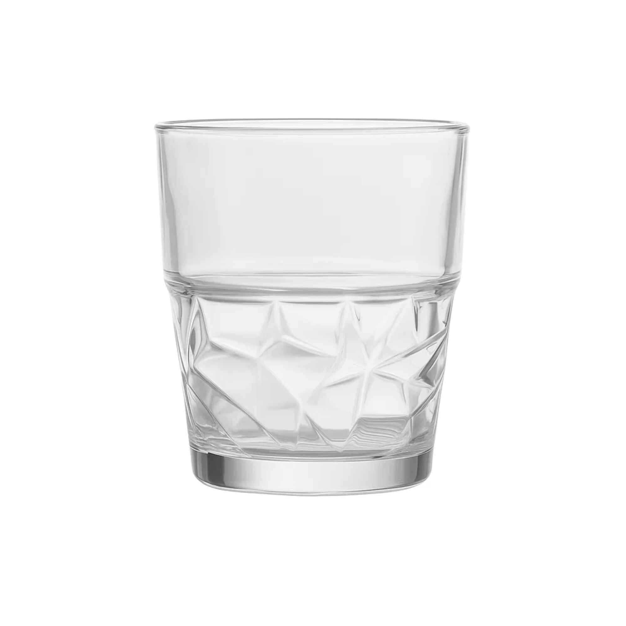 Set de 6 vasos HB Rugo con capacidad de 358 ml cada uno. Fabricados en vidrio transparente de alta resistencia, con un diseño geométrico facetado en la parte inferior que aporta estilo y modernidad a tu mesa. Ideales para servir agua, jugos, refrescos o cócteles. Aptos para lavavajillas, resistentes al uso frecuente en el hogar, bares y restaurantes.