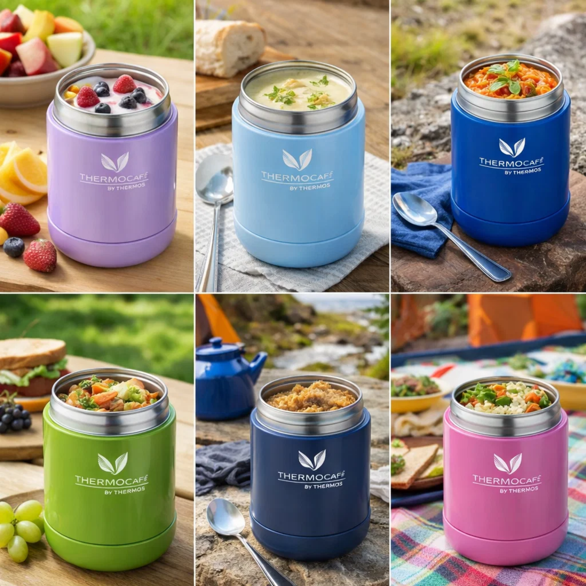 Prepara deliciosas comidas para el regreso a clases de tus hijos con el termo de comida con diseño geometrico en color azul, fabricado en acero inoxidable con capacidad de 500ml. ¡Disfruta de comidas calientes durante 5 horas y frías durante 7 horas!