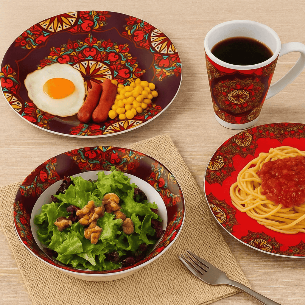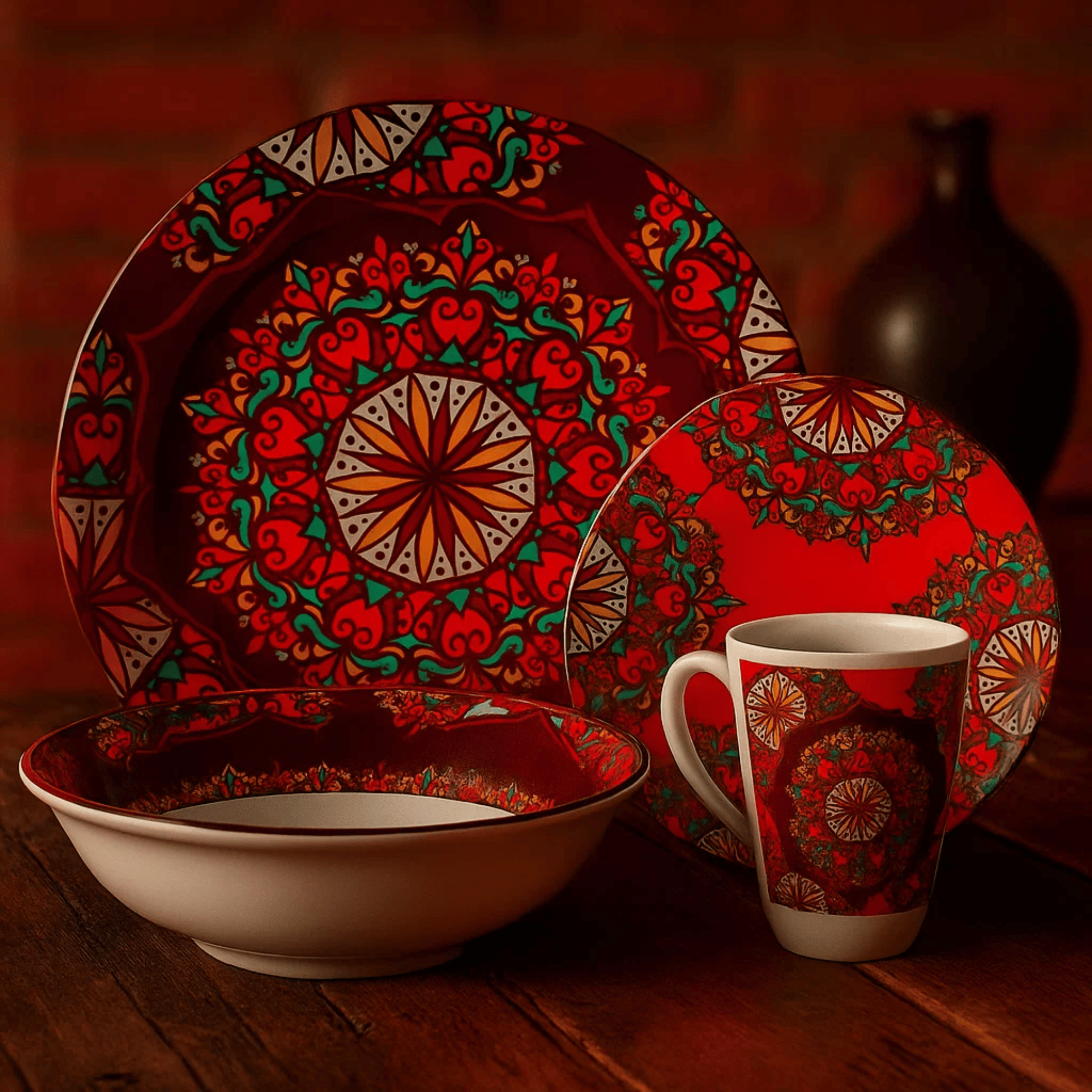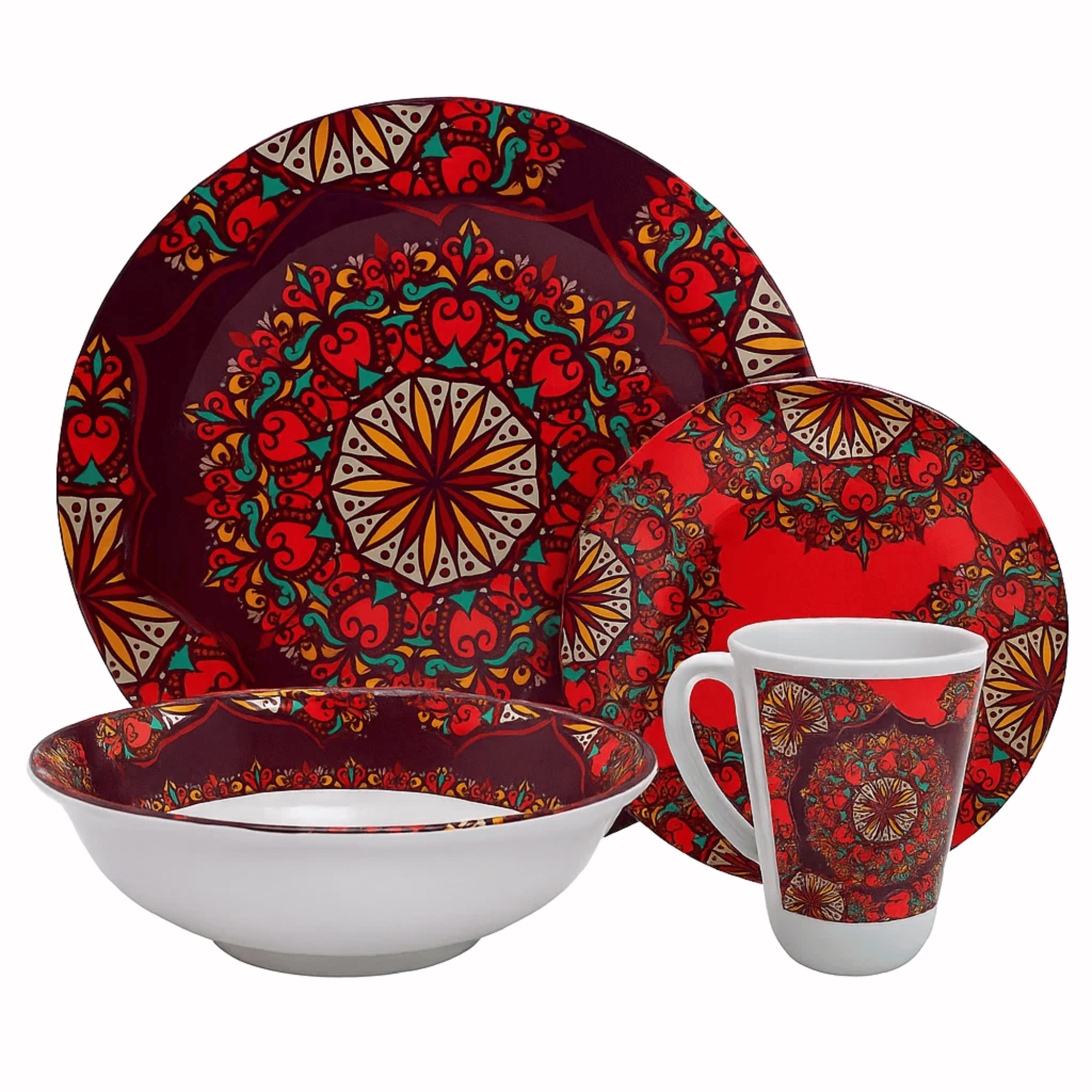 VAJILLA EN MELAMINA CLASICA ARMONIA ROJA 16 PIEZAS