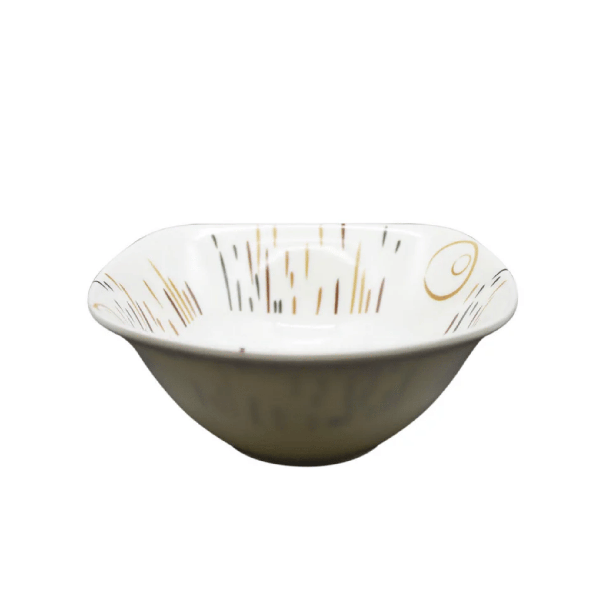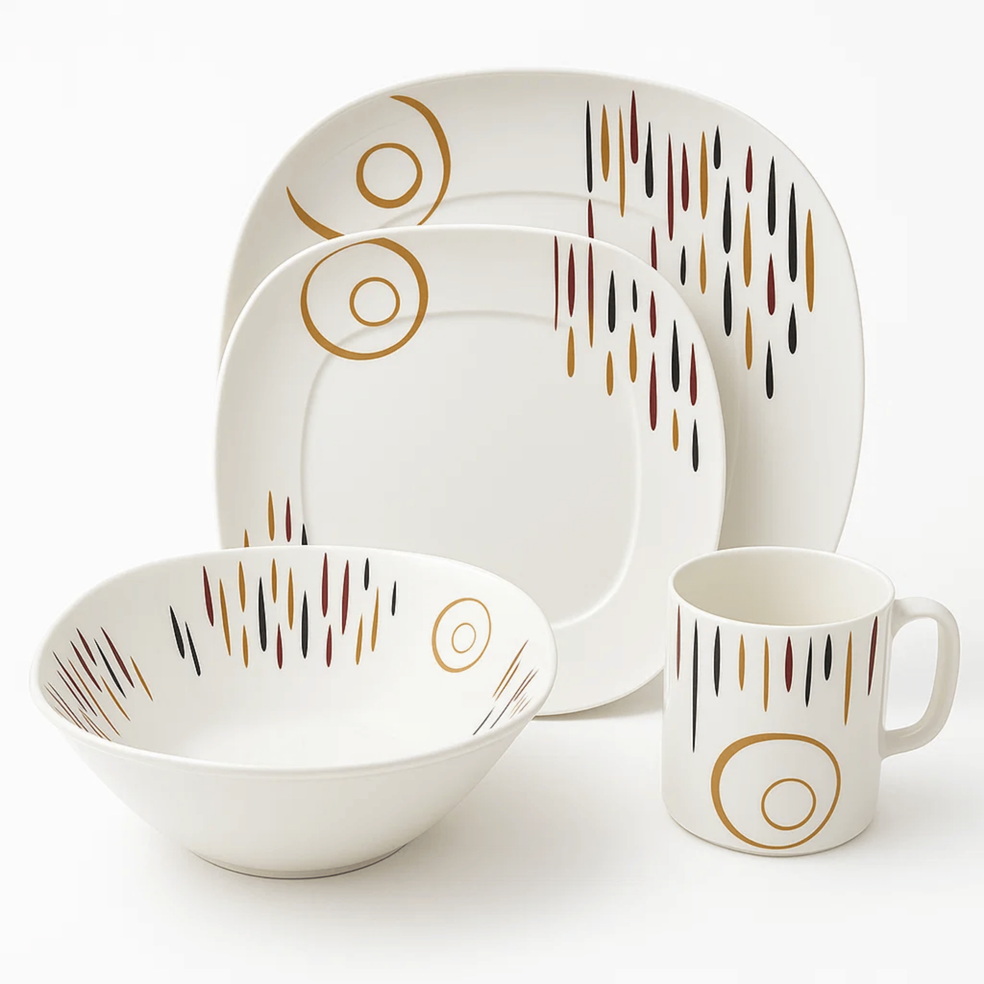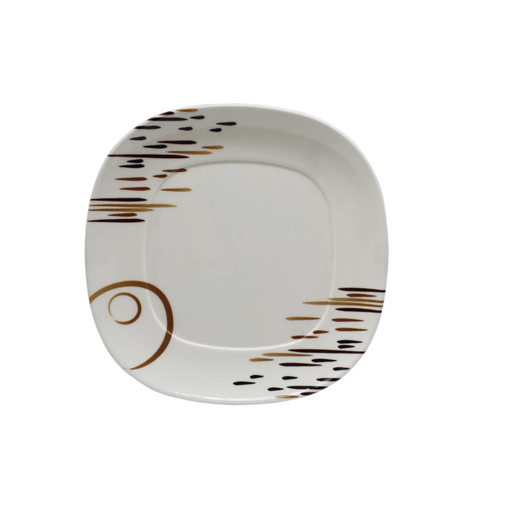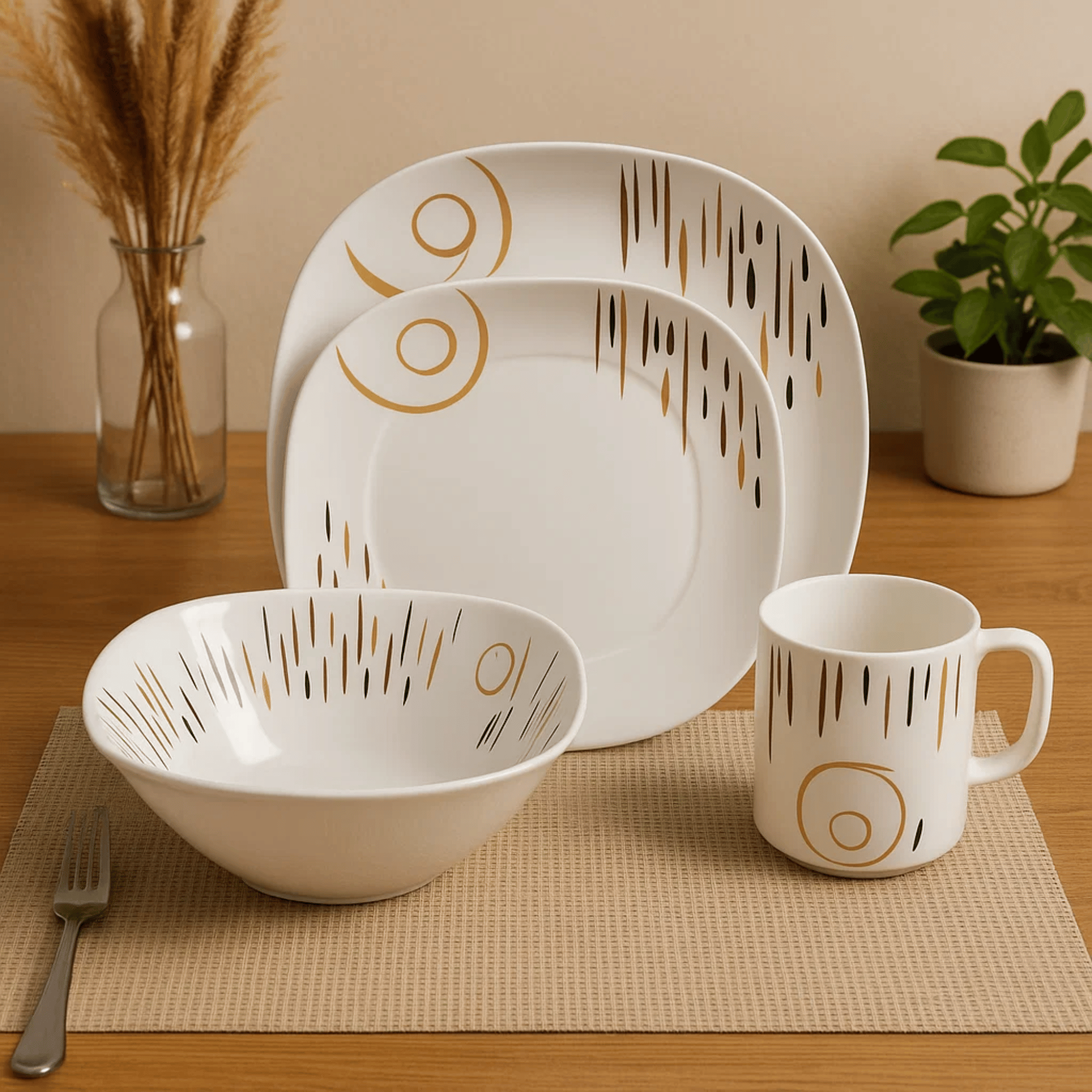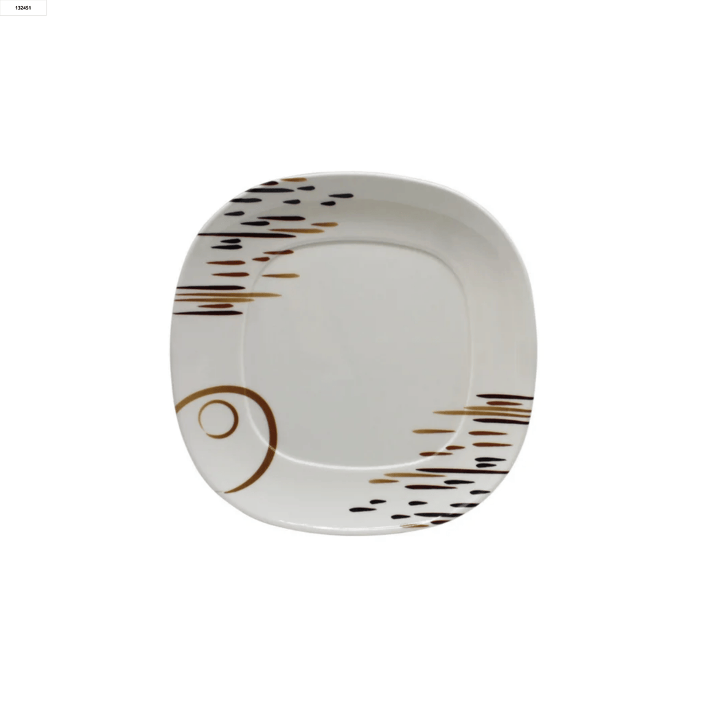 VAJILLA EN MELAMINA IMPERIAL BLANCA LINEAS CAFE-BORDE SEMI CUADRADO 16 PIEZAS